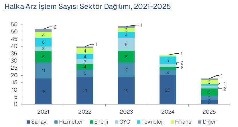 2025 yılında toplam 18 halka arz işlemi gerçekleştirildi. Bu sayı, 2021 yılından bu yana kaydedilen en düşük seviye olarak dikkat çekiyor.